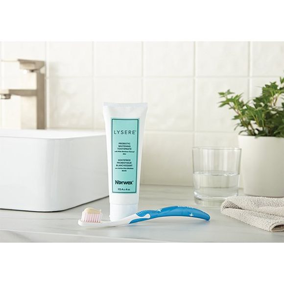 Tai trigubo poveikio dantų pasta su specialiais probiotikais. Gerina burnos sveikatą, giliai valo, balina dantis, palieka gaivų burnos kvapą. Tinka veganams.